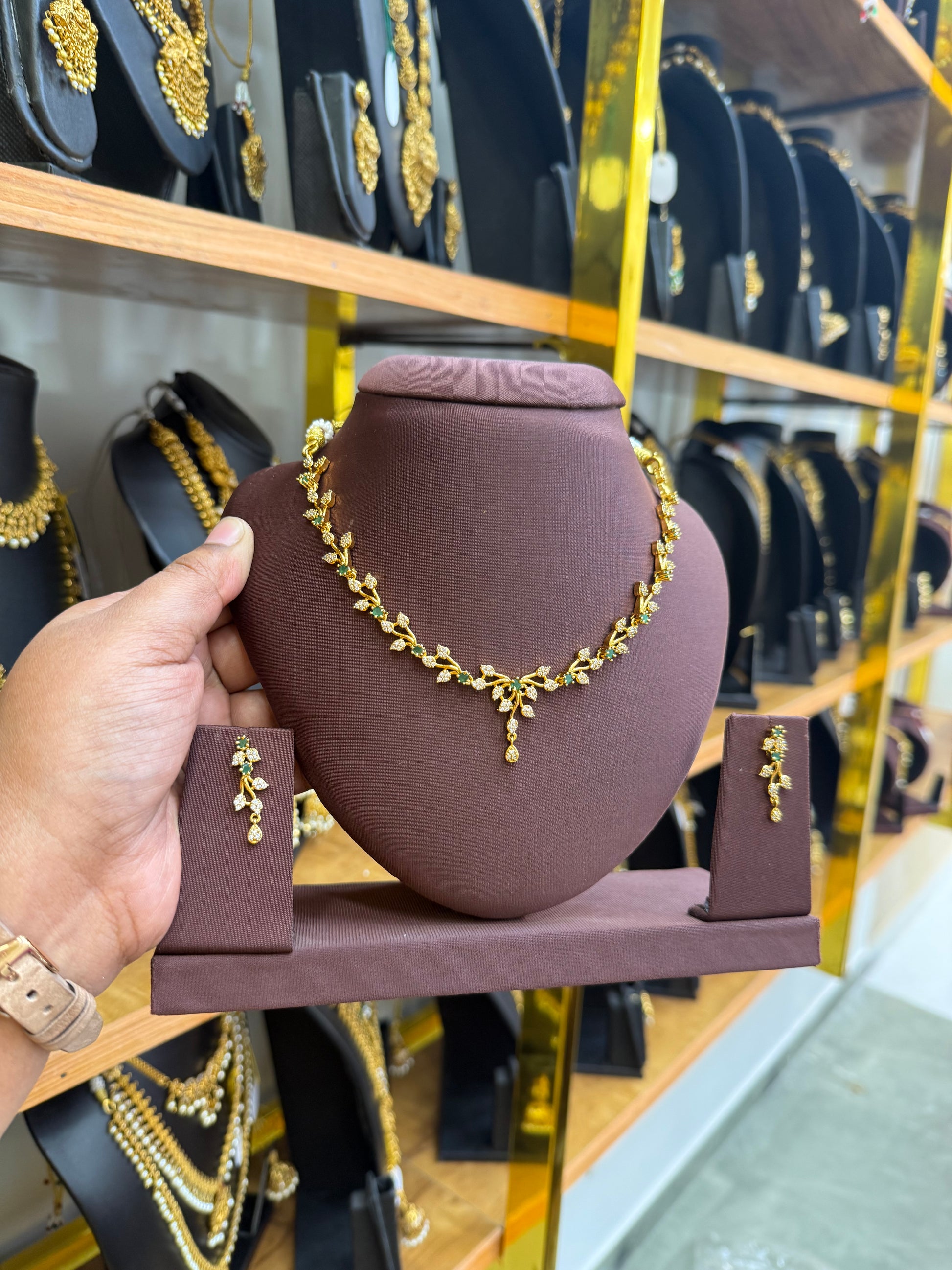Emerald stone leaf necklace